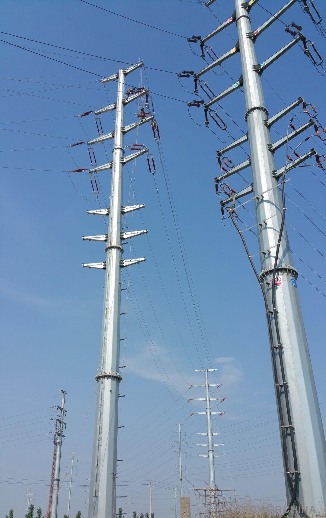 新建110kV線路全長為10.05km,其中架空線路9.38km,電纜線0.67km,新建鐵塔共52基,其中鋼管桿46基,角鋼塔6基。新建35kV線路為9.52km,其中電纜線路0.67 km,架空線路8.85km,與110kV線路同桿架設(shè)46基,新建鋼管桿7基。