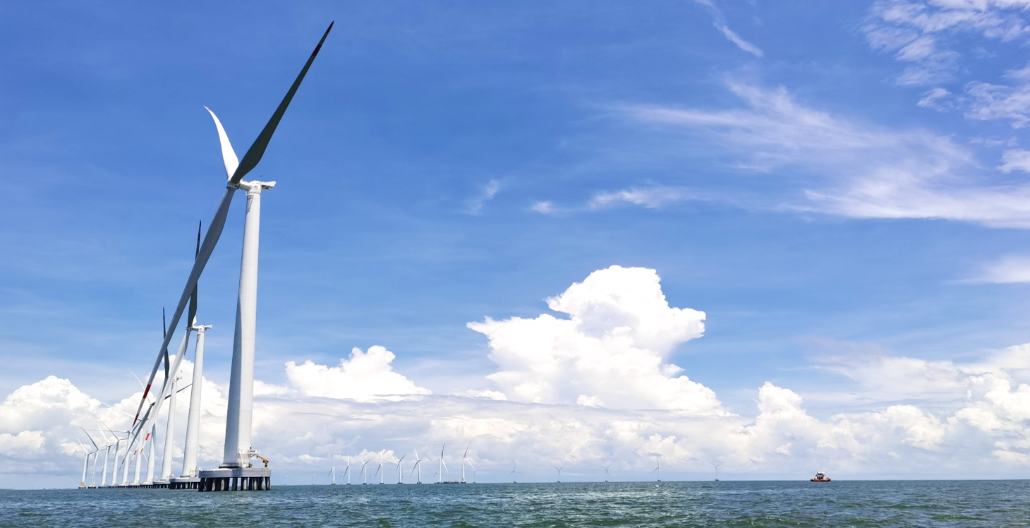 越南金甌海上風電工程位于越南最南端的金甌省,三面臨海,該省毗鄰泰國、馬來 西亞、印度尼西亞等國海域,是東南亞國際水域的中心。項目地處金甌省登瑞縣近海地區,位于金甌市東南約40km,占地面積約6.3516公頃,最遠點距岸邊約4km。 項目建設規模為350MW,是越南乃至整個東南亞目前最大的海上風電項目,項目的順利實施為公司承攬其他海外類似海上風電項目打下堅實的基礎。